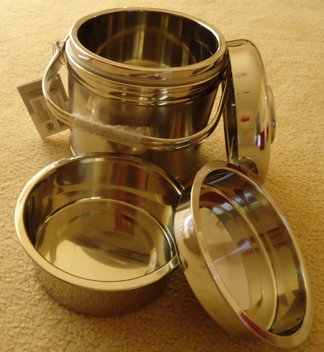 Duel layer Stainless Steel cannister with a 2 top trays. 2.2L capacity.