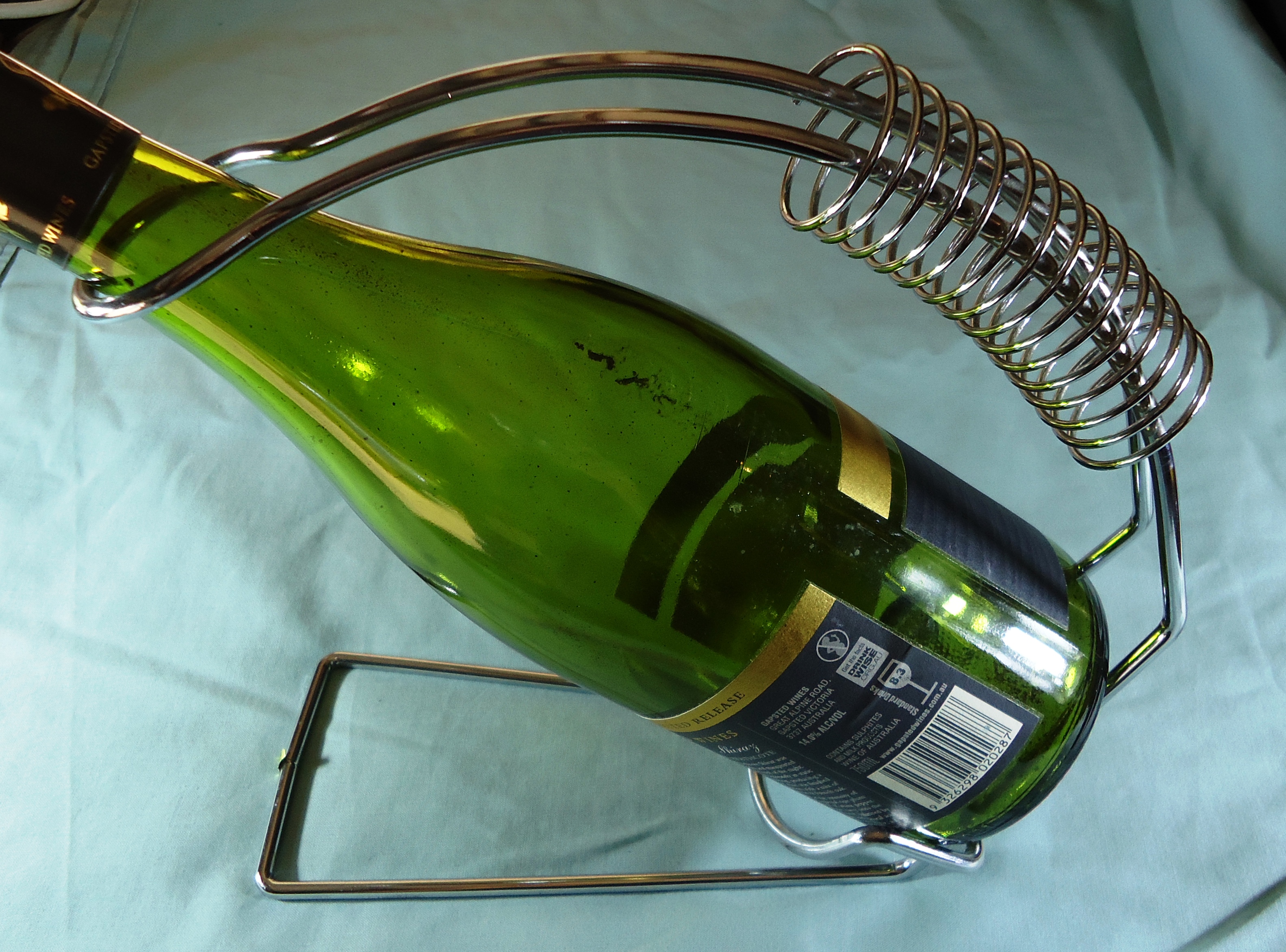 Stainless Steel wine bottle stand with spring Handle.